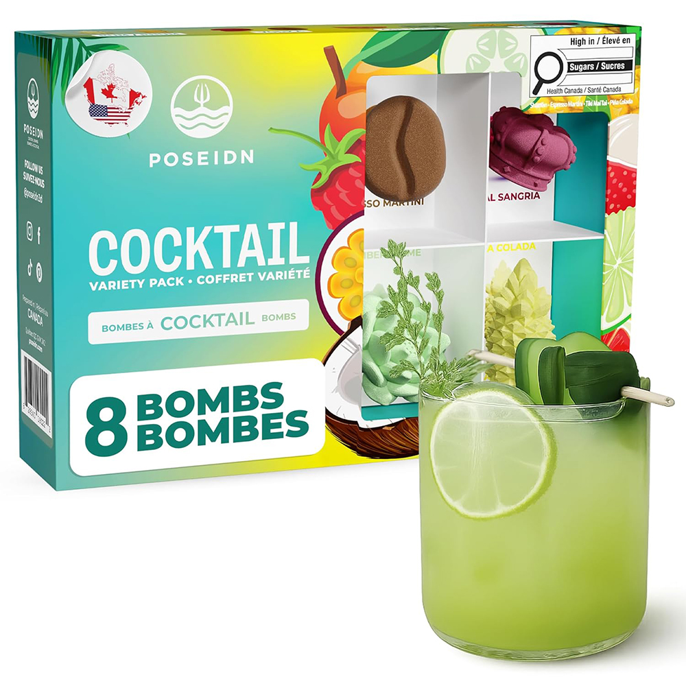 A fun, easy way to elevate drink time, Poseidn Cocktail Bombs are flavor-packed spheres that dissolve with a fizzy swirl, instantly transforming soda, tonic, or sparkling water into cocktail- or mocktail-ready drinks.Just drop one bomb into your drink, stir until it dissolves, and if you like add a splash of liquor (gin, vodka, rum, etc.) for a custom cocktail, or enjoy on its own for a refreshing mocktail.With a range of flavors from tropical to citrusy and herbaceous, it’s an easy, mess-free way to impress guests or treat yourself no bartending skills needed. | |