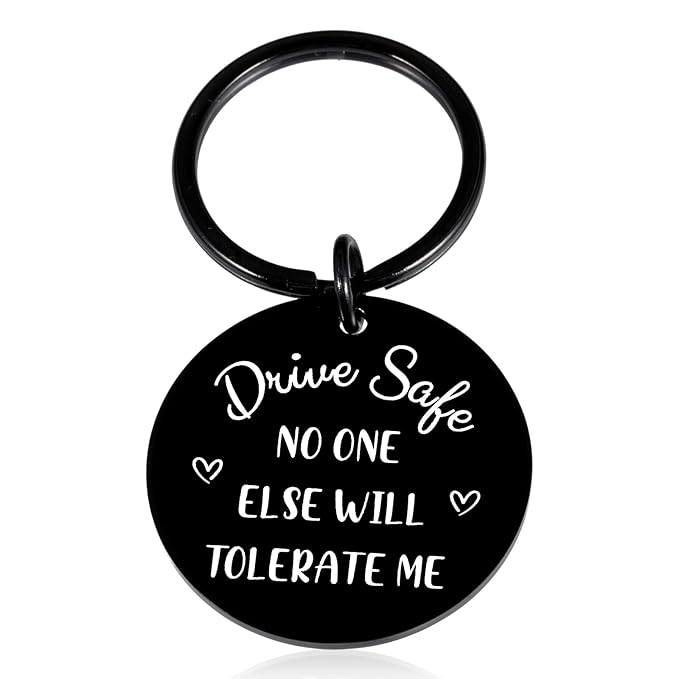 The “Boyfriend Gifts from Girlfriends – Christmas/Valentines/Anniversary” keychain is a thoughtful and playful token of affection, designed specifically to show your love and care. Crafted with durable materials and featuring the message “Drive Safe, No One Else Will Tolerate Me”, it blends humour with sentiment—perfect for surprising your boyfriend during the holidays or any special occasion. Compact and everyday‑functional, it slips easily onto his keys or bag, serving as a constant reminder of your bond and concern. The design and packaging make it ready for gifting, whether for Christmas, Valentine’s Day, or your anniversary.